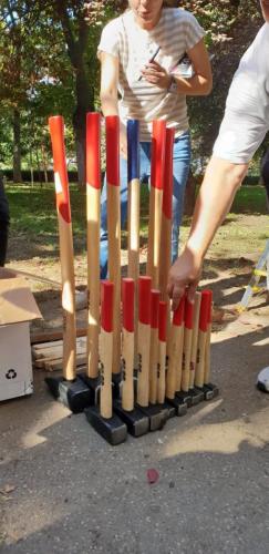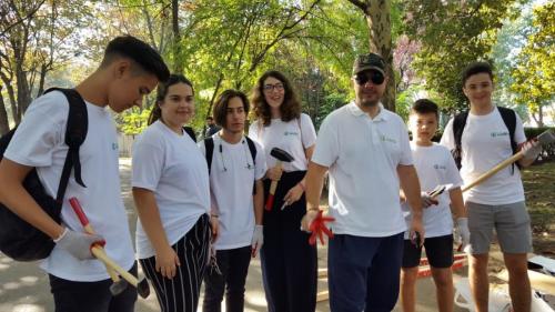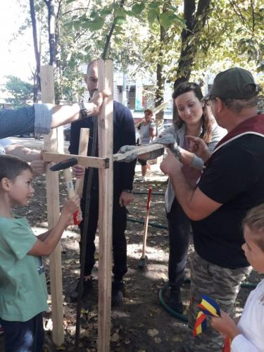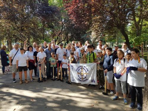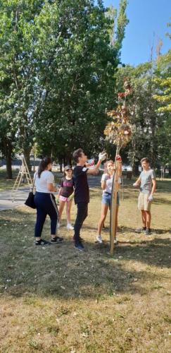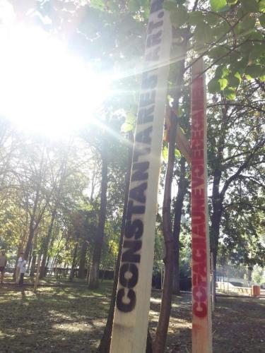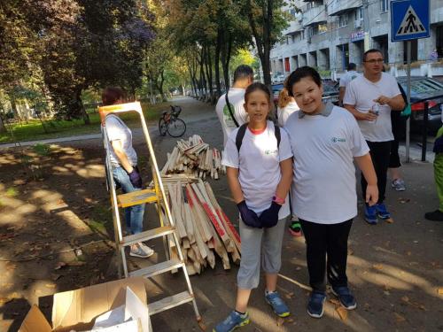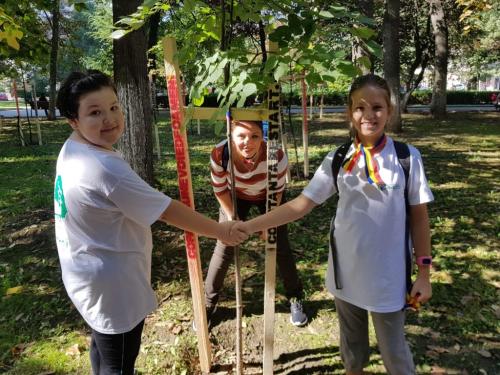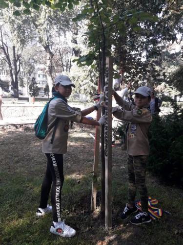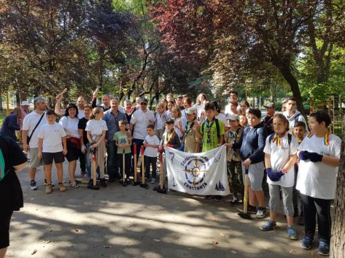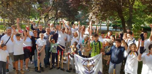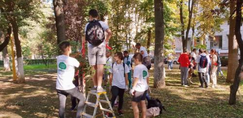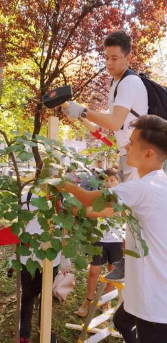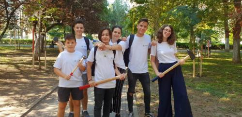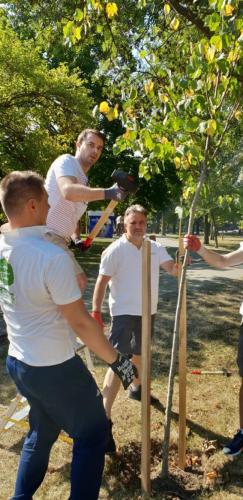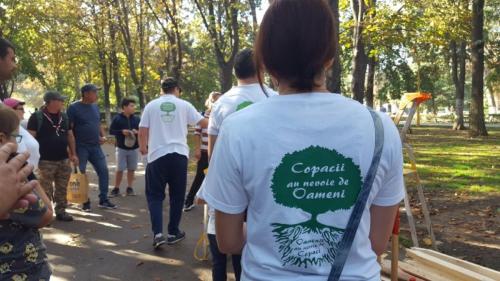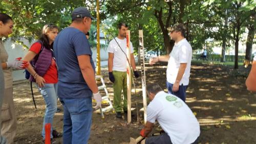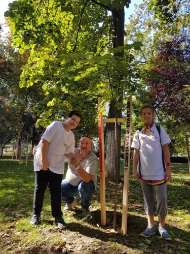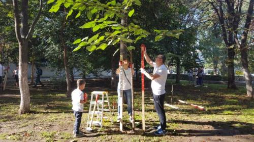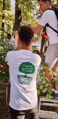 Montat tutori si toaletat copaci tineri in Parcul Tabacariei, zona City Park Mall.
